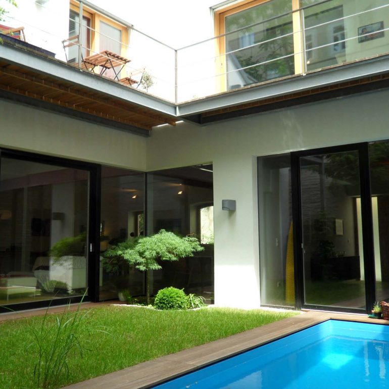 Bauweise: Altbausanierung, Stahlbau, Holzbau, Stahlbeton, Ziegel, Pool